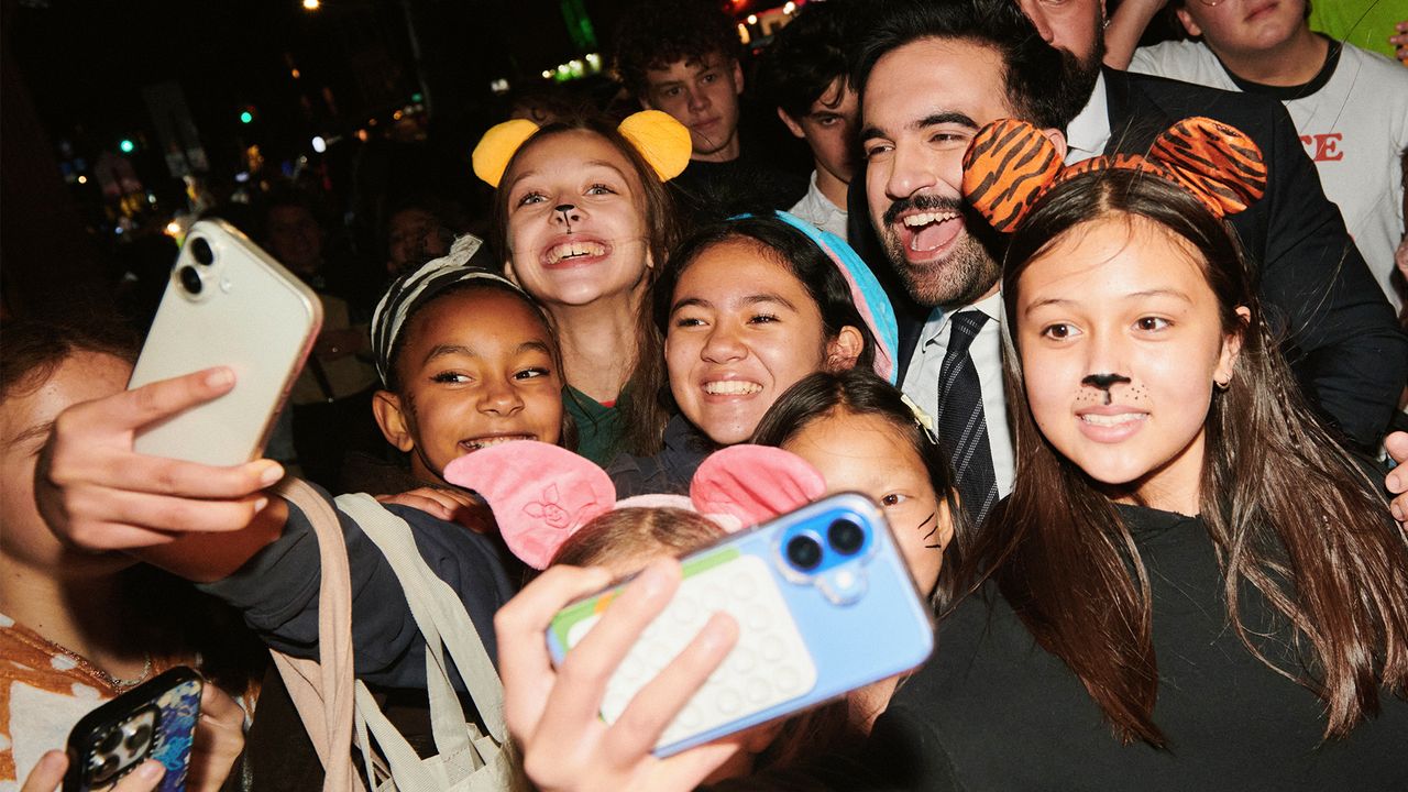 The 34-year-old Democratic mayoral candidate—dressed in his usual non-costume of a navy suit and dark striped tie—is surrounded by his aides, two security guards, and hundreds of shrieking, delighted onlookers. He gamely greets and poses for photos with as many of them as he can: a Michael Myers, a Cher Horowitz, a pair of Ghostfaces, several Princess Elsas, countless KPop Demon Hunters. As he makes his way up the street, a teeming crowd forms in his wake.