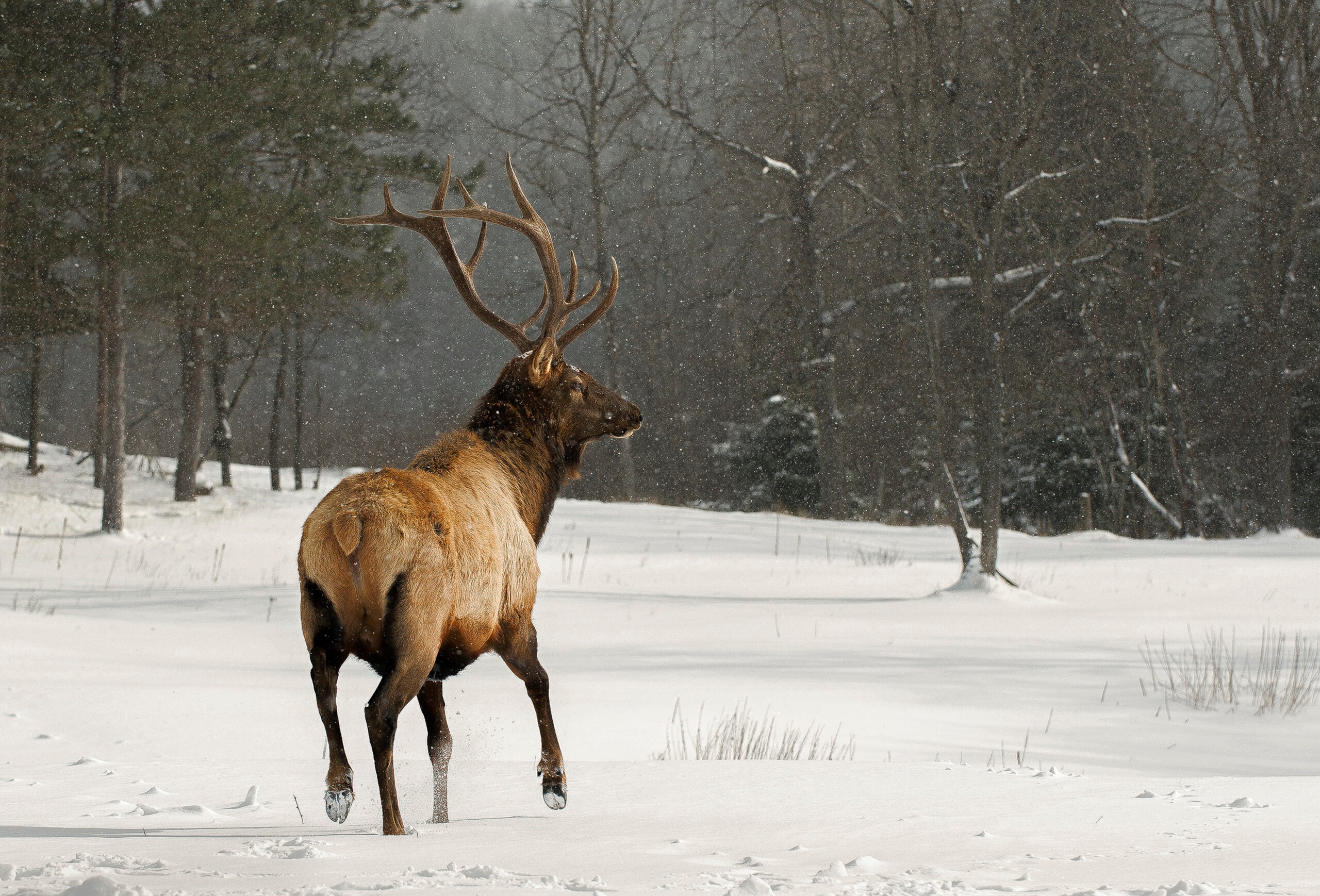 “This is very elky; this whole area is,” Carl said as we descended through an aspen meadow. He was 20 feet in front of me when suddenly he dropped his ski pole and began moving in a crouch. I saw it too: a sturdy doe, maybe 40 yards from Carl, all alone. He closed the gap. She kept eating grass, head down. He notched an arrow. The doe, standing broadside, stepped behind a spruce branch. Carl felt about 60 percent confident in his shot—not good enough. He inched toward a better position. Just then the doe saw him. She bolted before he could draw.