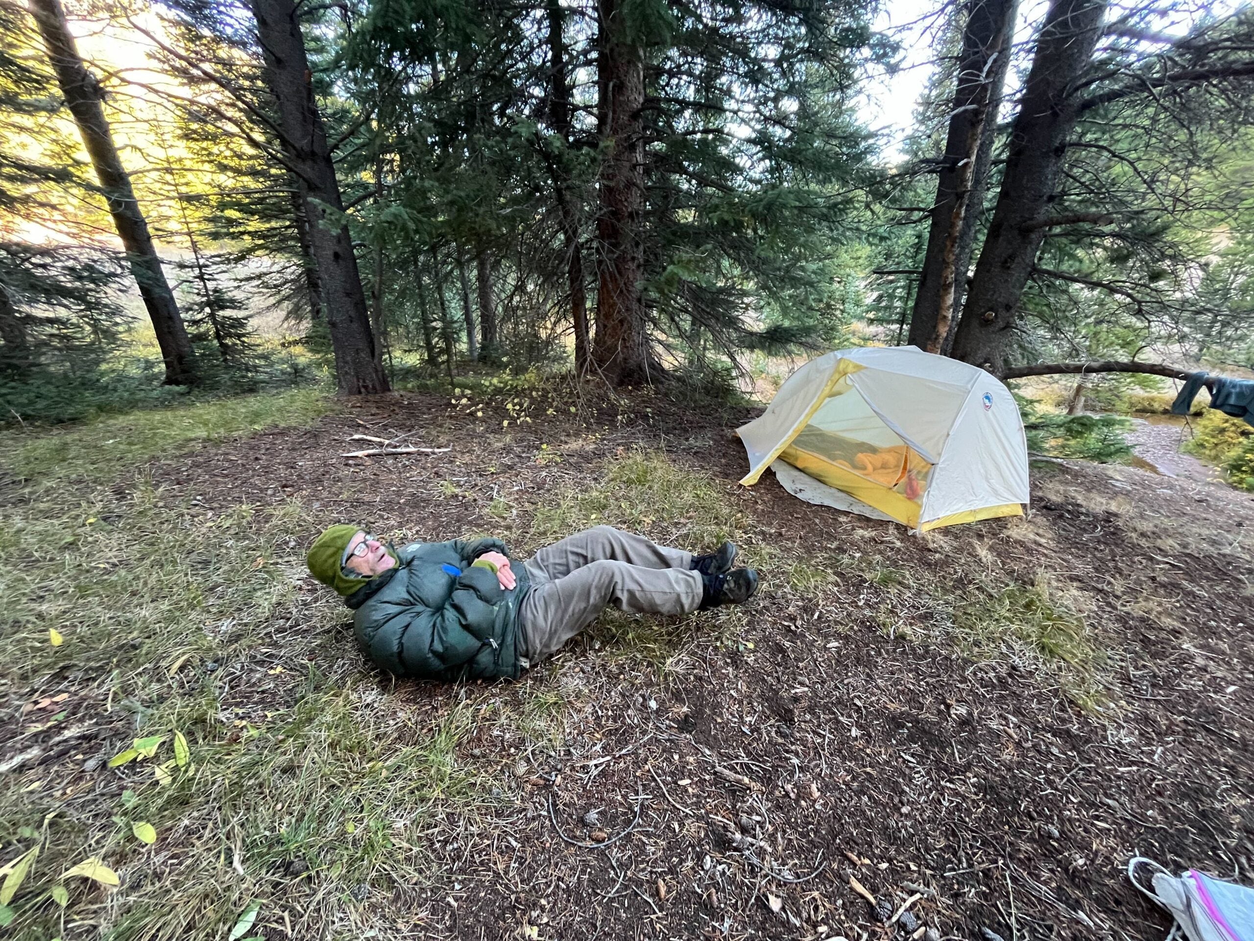 Carl, who spent much of the day photographing bark and woodpeckers, was savoring his 12th night camping this season, a personal best. Teig had gotten 15. As we faded to sleep in our tents, I couldn’t help but think destiny was in play: Carl’s streak was finally, mercifully about to end.