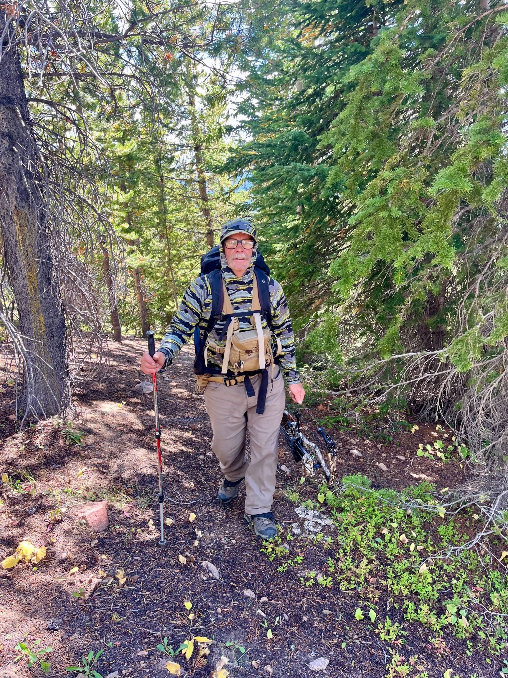 It was early September 2024, the second day of Colorado’s bow season. Carl, a 65-year-old house painter from Vail, held elk and deer tags good for both sexes but so far had not seen any animals. The sun’s heat felt like it does in July. Carl had dark, greasy smudges on his cheeks to avoid detection by his targets, and was dressed in a camouflage long-sleeve hoodie and beige pants. He would have been nearly impossible to spot if not for his 75-liter azure backpack, which could only be camouflaged in an ocean.